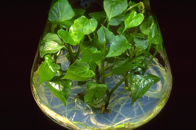 甘藷植株若感染兩種以上的病毒病,造成植株生長勢減弱、黃化、矮化等現象,並可藉由粉蝨或蚜蟲或機械等傳播,對於塊根的品質及產量影響頗鉅,甚至導致30%以上之減產,因此可利用脫毒技術將病毒病去除,並因培養基的改良,而獲得高比率的健康基本種,於短時間內大量繁殖甘藷健康苗,並提出「甘藷種苗病害驗證申請」,通過驗證才可進行下一階段的繁殖,如此方能提高種苗的品質,透過本體系可滿足甘藷健康種苗之需求,並增加農民產值每公頃可增加10萬元以上的收入 (以1公斤10元計算),重要的是每年必須更新種苗,選擇健康種苗種植對提升產量、品質及收益為一大保障。