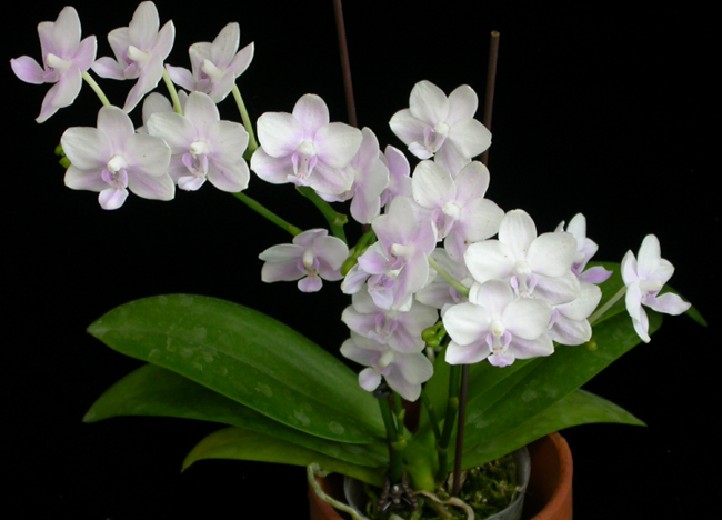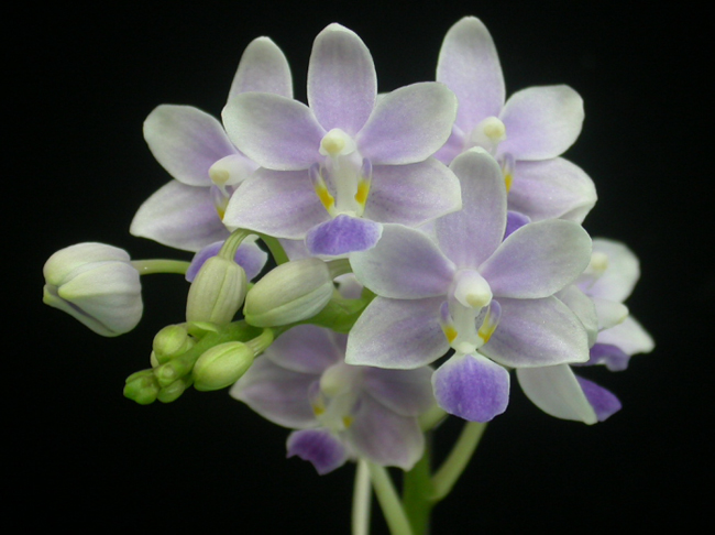 本品種為農業試驗所利用藍紫色朵麗蝶蘭與白花蝴蝶蘭雜交所選育的新品種,花朵呈現柔和之淡紫花色,花橫徑約3.9cm、縱徑約3.1cm、花梗長約10.7cm,具有花期可調控之特性、花期長、單花壽命約2-2.5個月,雙梗性高、花梗分叉,花序排列整齊、具有不消蕾、花型圓整與整體比例適中等優良特性,適合開發2.5-3吋盆開花株。