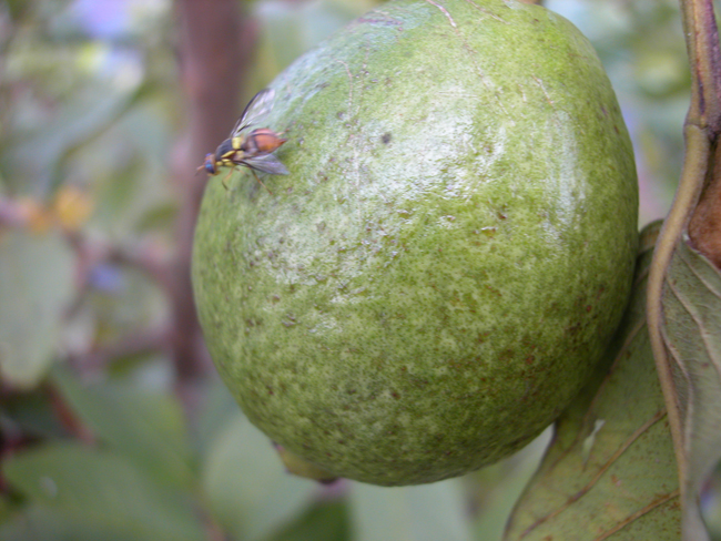 東方果實蠅是台灣重要蔬果害蟲,東方果實蠅雌蟲產卵於果皮下,幼蟲孵化後於果實內蛀食造成果實腐爛,除影響商品價值外,更因檢疫問題影響相關農產品外銷。