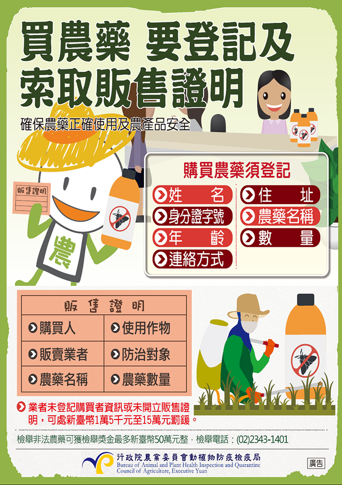 105年1月1日起購買農藥要登記 要索取販售證明 2016-02-26