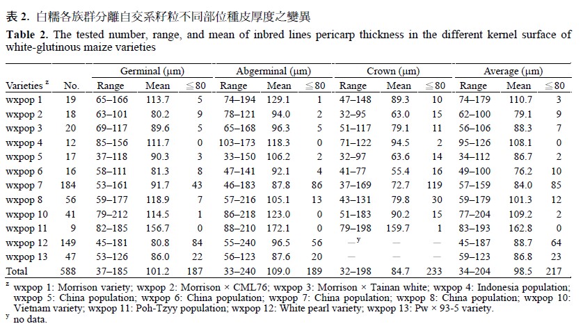 Key words:Maize, Glutinous corn, Pericarp thickness, Variation
