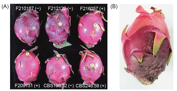 Wet rot of pitaya, caused by Gilbertella persicaria, is a significant disease affecting pitaya production in Taiwan. However, the biological characteristics and pathogenicity of the pathogen remain unknown. From 2009 to 2024, diseased pitaya tissues showing symptoms of wet rot were collected from 90 field sites across 23 townships in 11 counties, as well as from one local market in Taiwan. A total of 212 isolates of G. persicaria were obtained from pitaya, all of which belonged to the minus (-) mating type. Additionally, one isolate of G. persicaria from a diseased strawberry and another from a peach were both identified as the plus (+) mating type. These results indicate that both mating types of G. persicaria are present in Taiwan. To further investigate host-related differences among G. persicaria isolates, morphological, pathogenicity, and molecular phylogenetic analyses were conducted. The results showed that: (1) Morphologically, the number of sporangial wall segments in pitaya isolates was significantly higher than that of the type strain, by an average of 2.1–2.6 segments; (2) In pathogenicity assays, only pitaya isolates were able to induce typical wet rot symptoms on pitaya fruits. The results indicated that symptom type and lesion size were associated with the host origin of G. persicaria isolates, but not with their mating type; (3) In phylogenetic analysis, the phylogenetic tree based on concatenated sequences of internal transcribed spacer (ITS), actin, and 28S rDNA large subunit revealed that pitaya isolates formed a distinct monophyletic clade. Based on morphology, pathogenicity, and phylogenetic analyses, the pitaya isolates of G. persicaria were different from the type strain. Environmental condition assays indicated that optimal temperature and relative humidity range for disease development are 28–36℃ and above 80%. No disease symptoms developed at temperatures below 16℃ or above 40℃. Further inoculation trials were conducted on pitaya fruits at various developmental stages, followed by postharvest incubation at 25–32℃ to observe disease progression. These results demonstrated that fruits exhibited the most severe disease by postharvest inoculation, indicating that G. persicaria primarily infects pitaya during the fruit maturation stage, particularly at harvest.