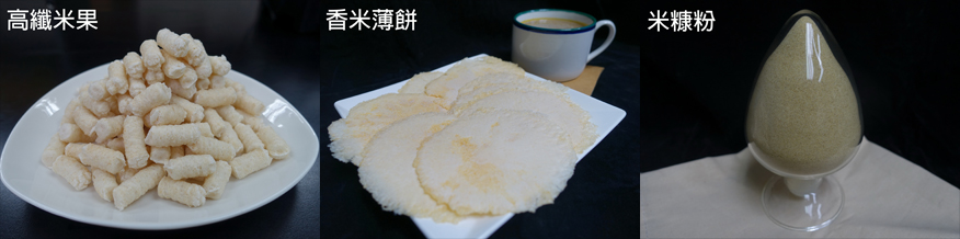 行政院農業委員會農業試驗所為了提振國內米食消費,積極開發多元稻米加工產品,並研發副產物處理再利用技術。該所研發成功的「高纖米果」與「香米薄餅」,不僅成為消費者喜愛的零嘴食品,也符合食安要求,於將來有助於擴大國人稻米的食用量。