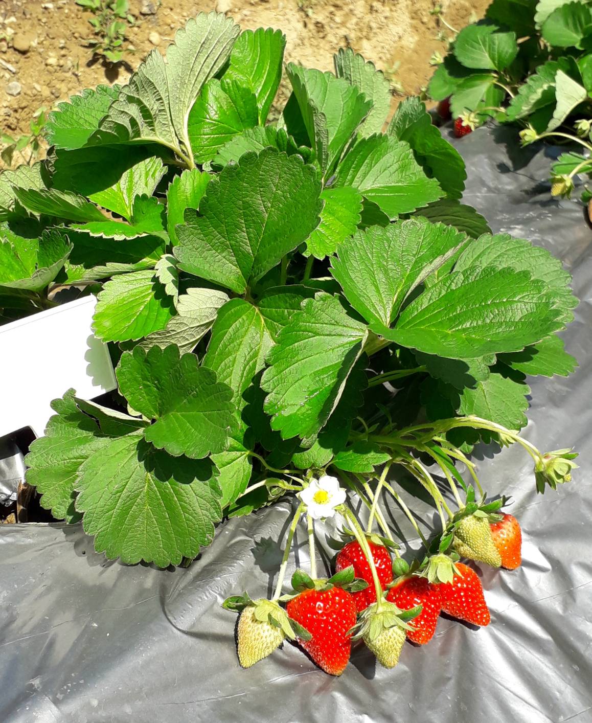 面對船運及進口資材價格節節上升,使栽培成本居高不下;該所進一步開發「菇類培植廢棄包應用於設施栽培之技術」,利用廢棄香菇太空包經脫包、去除雜質之回收介質,簡易處理後降低含水量,再加入適當比例稻殼調配,最後經消毒滅菌處理,可替代目前使用的進口泥炭土、椰纖等資材,做為設施栽培介質,成本低又有穩定料源。加上獨有的設施草莓養液調配技術,可提高果實品質 (包括最適糖酸比、香味和口感) 與發揮品種特有風味。