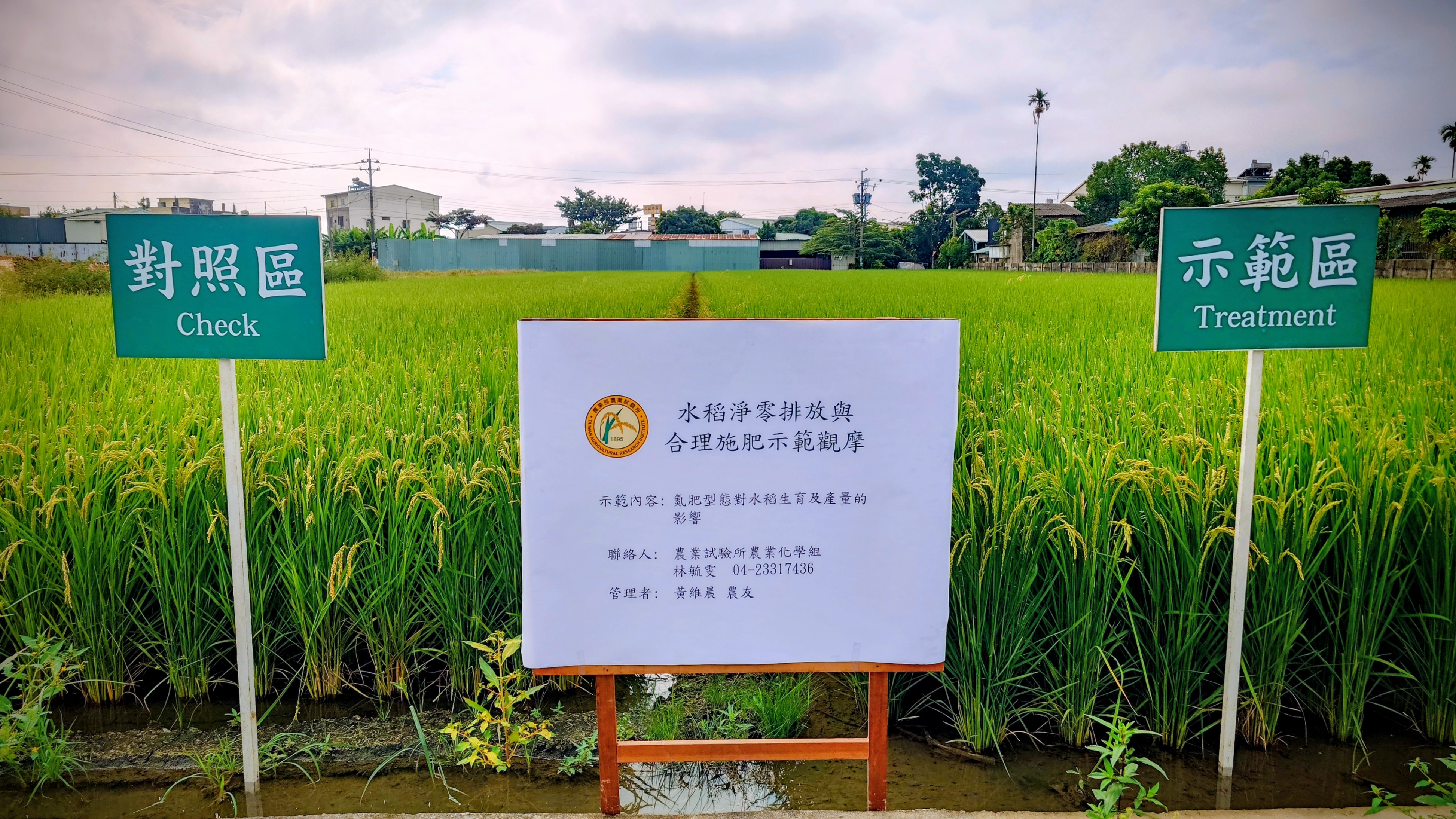 為因應我國2050淨零排放政策目標,農業試驗所在一期稻作耕作前,就水稻合理施肥減碳,建議農民在整地及施肥規劃階段調整氮肥型態,即可在不影響產量的情況下,有效降低稻田氧化亞氮排放,並提升肥料利用效率,作為水稻生產可立即採行的低碳管理措施。