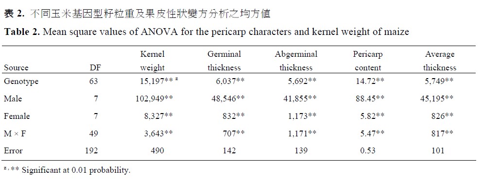 玉米花粉直感效應對籽粒重與果皮性狀表現之影響