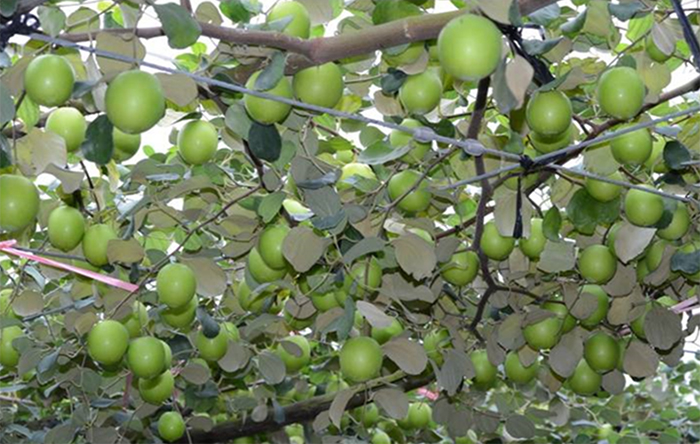 棗台農12號(水蜜)全株結果情形,枝條柔韌有彈性,結果後期不易折斷,減少損失並省工。